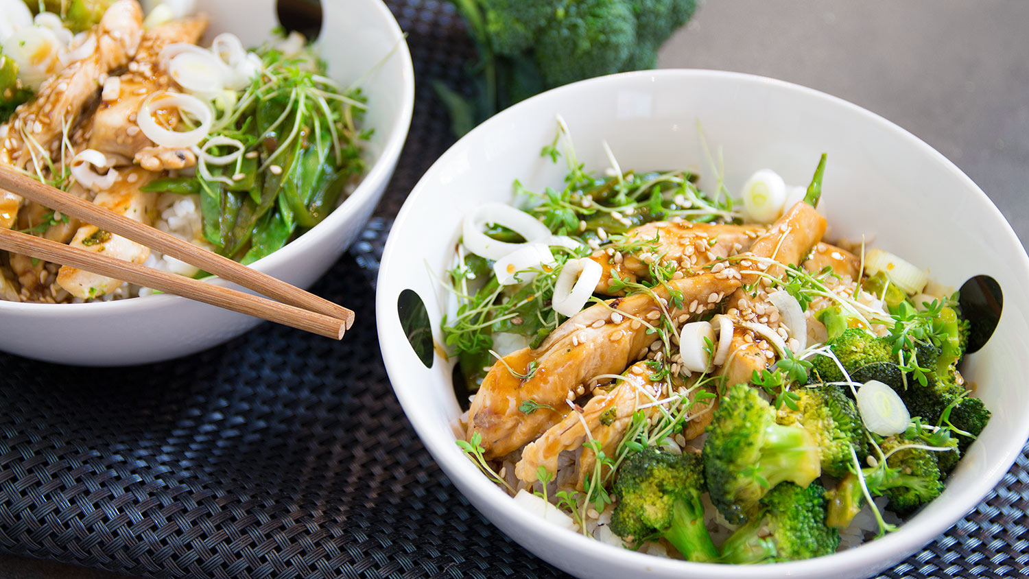japanische Reisschüssel mit Hühnchen